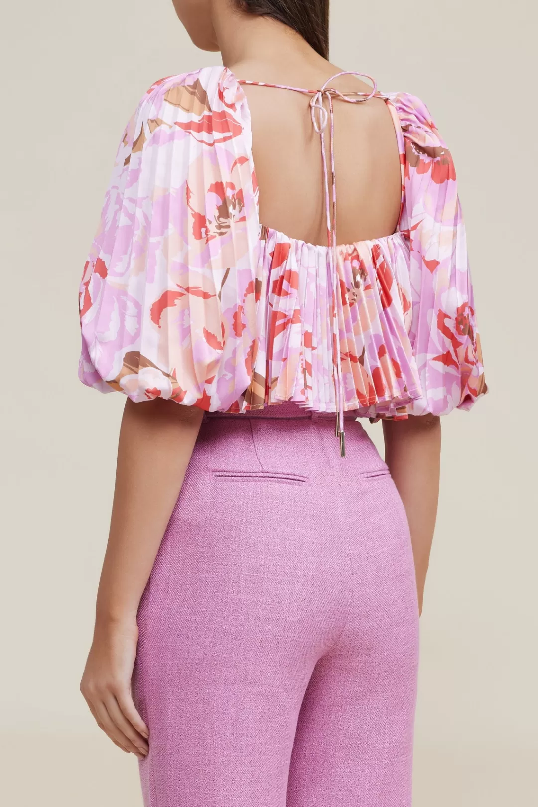 Crafted With The Event Season In Mind, The Lothair Top In Peony Harvest Is A Stand Out Silhouette. Cropped Style, Signature Acler Pleated Fabrication, Sweetheart Neckline And Centre Back Ties With Luxe Gold Hardware. Pair With The Lothair Skirt For A Complete Look.