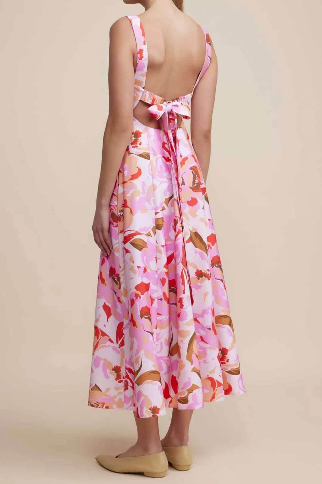 The Withington Dress In Peony Harvest Is Designed To Be Fitted At The Bust And Flow Toward The Hem. An Elegant Addition To The Collection, Featuring A Square Neckline, Back Bodice Ties With A Back Cut Out Feature.