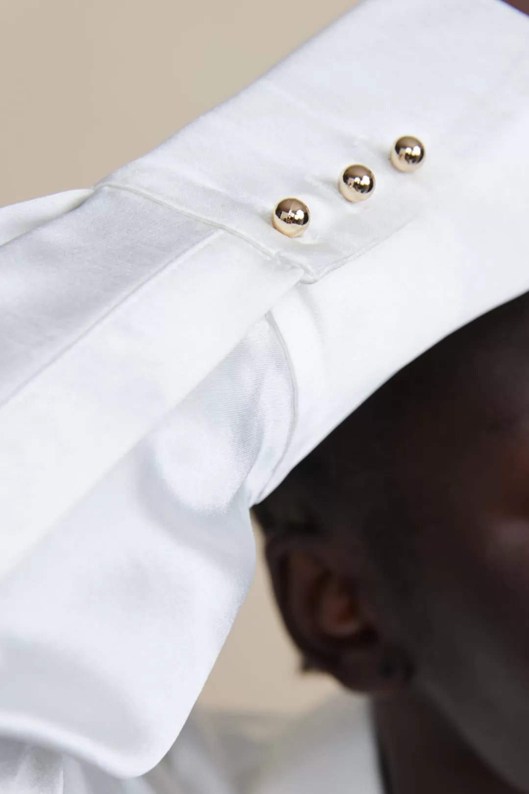 An Elevated Silhouette For Your Events This Season ~ Crafted From A Luxe Soft Touch Fabrication ~ The Woodbine Dress In Ivory Is A Carefully Constructed Piece. Full Length Sleeves, Exaggerated Collar, Luxe Gold Hardware And Cross Over Feature Toward The Hem. Pair With An Elegant Heel For A Complete Look.