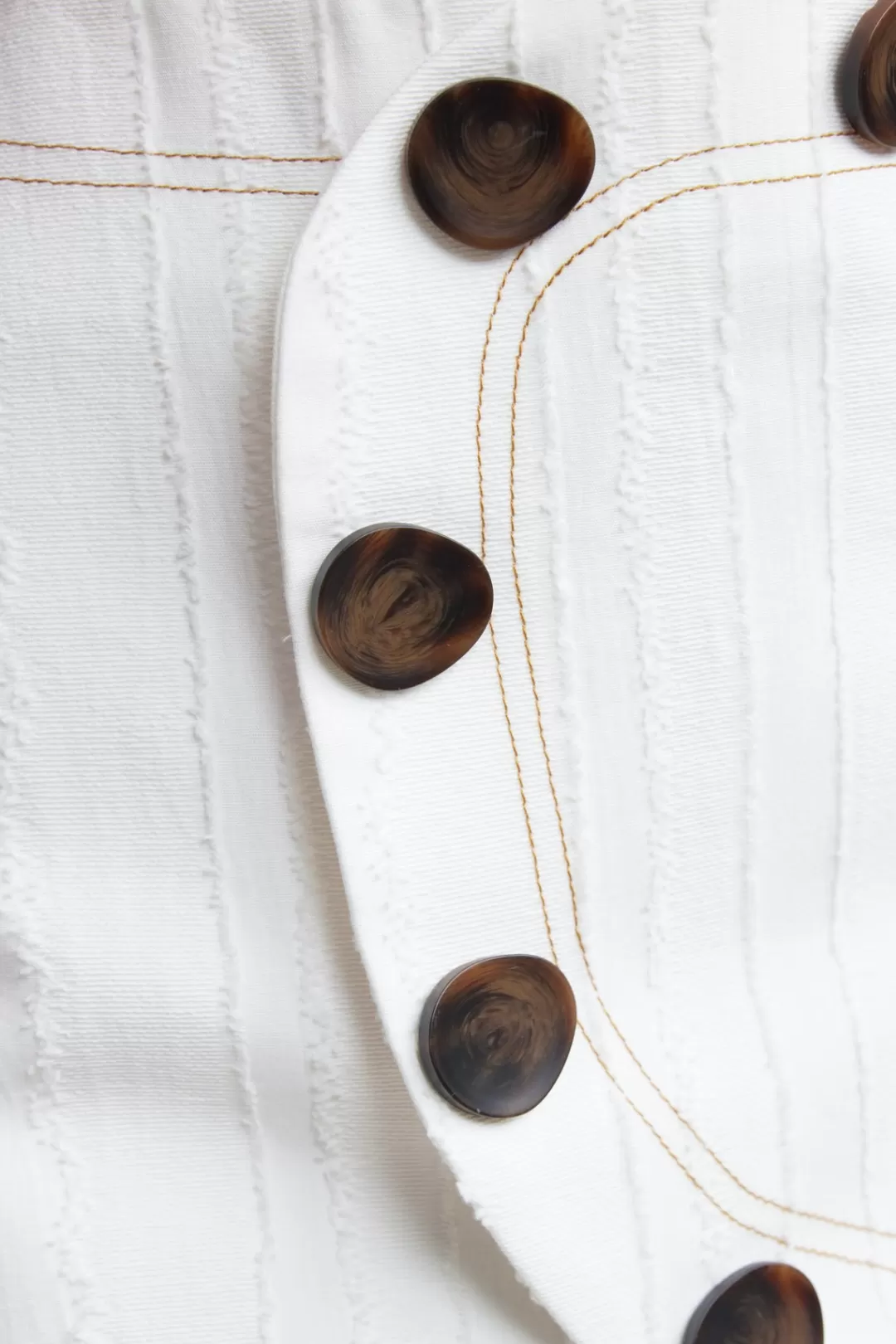 A Quintessential Acler Silhouette, Updated With Fresh Design Elements For The Season. The Holdsworth Skirt In Ivory Is Designed To Be Fitted At The Waist And Relaxed Toward The Hem. Curved Hem And Closure Adds A Playful Touch To This Structured Stye, Polished Off With Contrast Stitching And Buttons.