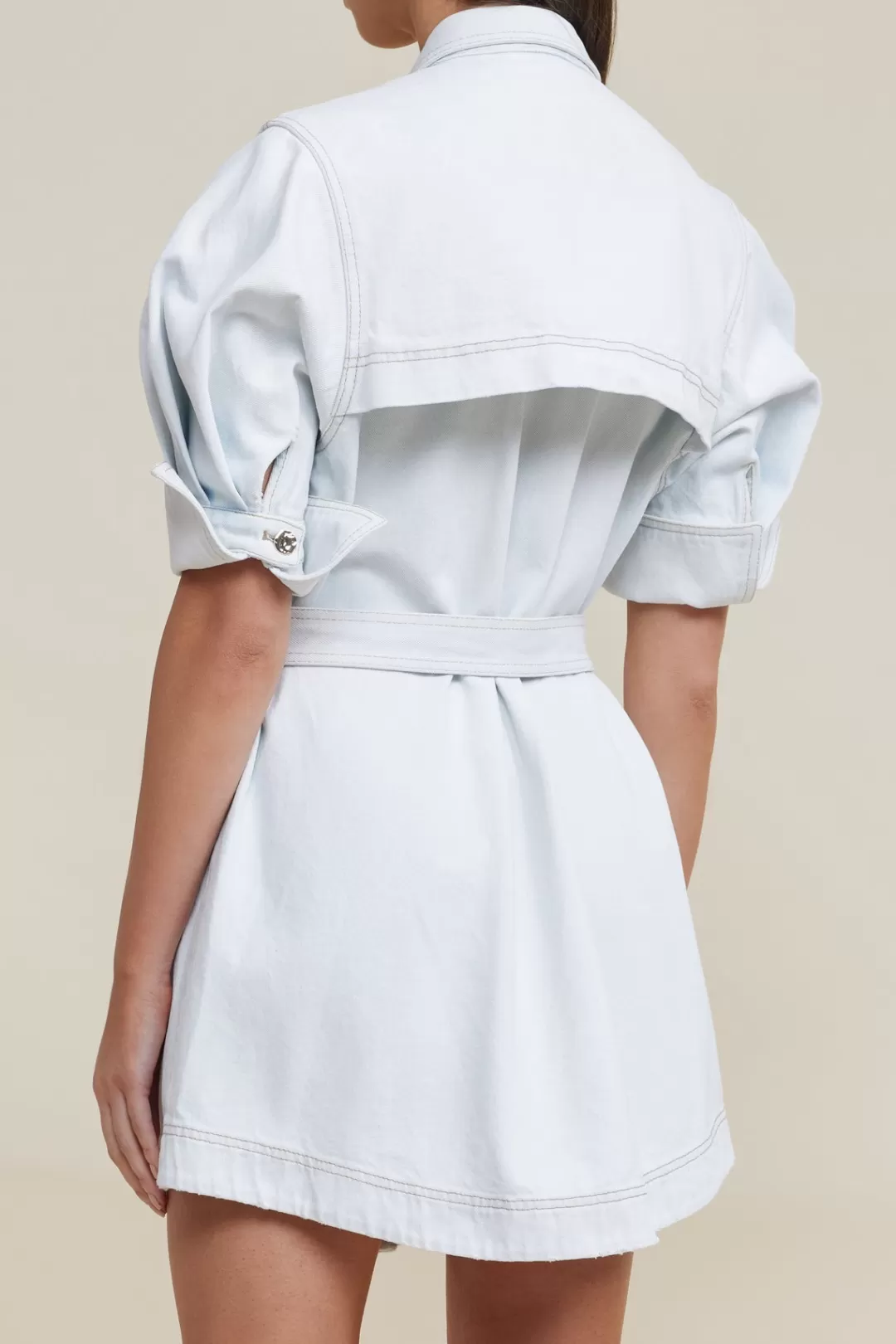 Your Go To Easy Wear Silhouette This Season. The Holmes Dress In Cloud Blue Will Be A Staple In Your Wardrobe This Resort Season. Crafted From A Light Wash Cotton, This Piece Features Button Front Closure, Adjustable Waist Belt, Contrast Stitching And Accentuated Cuffs.