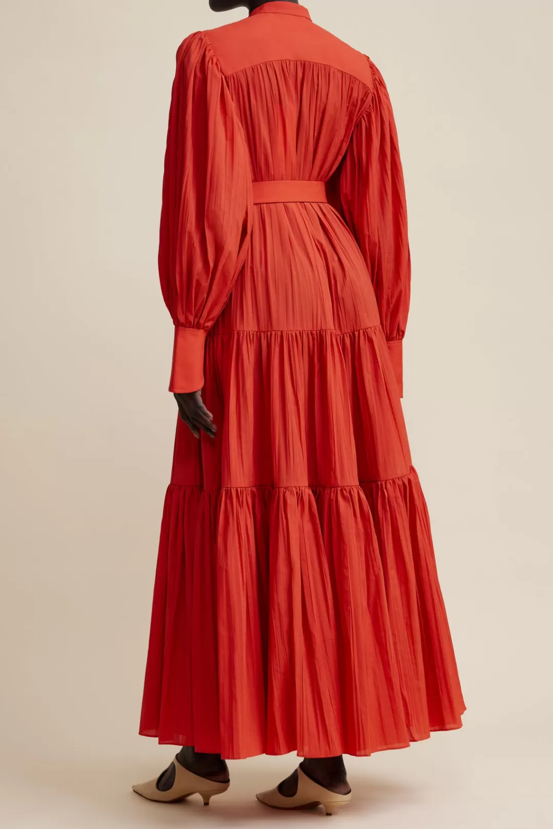 A Key Silhouette This Season ~ Crafted From Our Luxurious Pleated Fabrication. The Langdon Dress In Scarlet Makes A Statement ~ Full Length Sleeves With Accentuated Cuffs, Tiered Skirt, Luxe Gold Hardware And Removable D-Ring Waist Belt. Pair With A Simple Heel For A Compete Look.